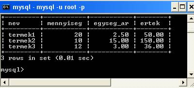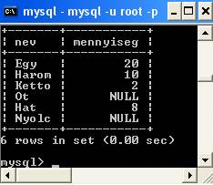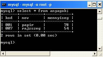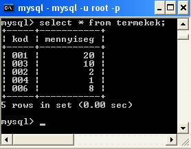 Feladat: Vegyük a termékek és az adatok táblákat ahol a termékek táblának két oszlopa van a kód és a mennyiség, míg az adatok táblának három oszlopa van a kód a név és a termelö. Természetesen a két tábla közötti kapcsolatot a kód oszlop adja. Vagyis ha megadjuk egy termék kódját a termékek táblából az illetö termék mennyisége mellett elérhetö a termék neve és a termelö az adatok táblából.