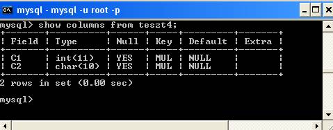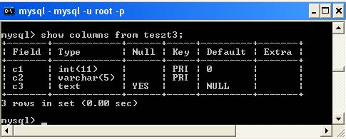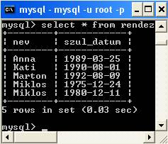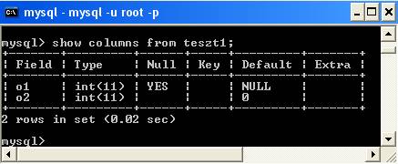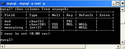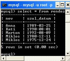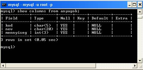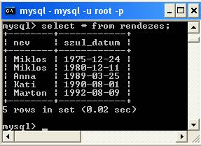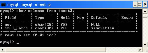 paranccsal hozunk létre. Ha már létezik ilyen nevü adatbázis, akkor hibaüzenetet kapunk és az adatbázis nem jön létre.