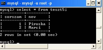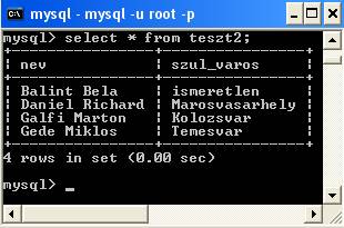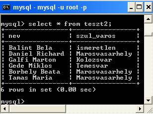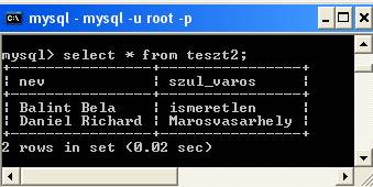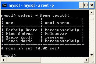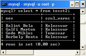 Feladat: Vegyük az elöbbi teszt2 táblát. Törüljük a táblából mindazokat akiknek szülövárossa 'Marosvasarhely'.