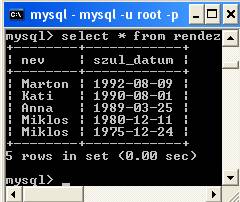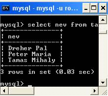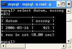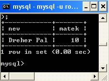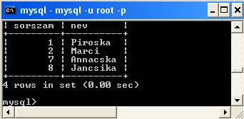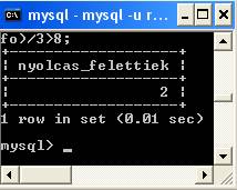 paranccsal megnyítunk egy adatbázist. Ha nem létezik ilyen nevü adatbázis, akkor hibaüzenetet kapunk.