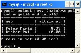 Az adatbázis kezelésben fontos szerepet játszik a táblák összekapcsolása. Az összekapcsolásban egy vagy több tábla vehet részt, olyan táblák, amelyek között kapcsolat van. Leggyakrabban a kapcsolatot a két (vagy több) tábla egy-egy oszlopában levö értékek képezik. A használt táblák kapnak egy aliast(egy új nevet) , ugy, hogy: ...FROM tabla_neve AS alias , ezeket az aliasokat használjuk utánna a SELECT-ben ha hívatkozni akarunk egy bizonyos tábla mezöire. A hivatkozás úgy történik, hogy : alias.mezö_neve.