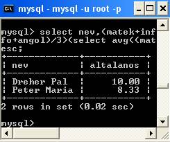 Ilyen esetben elöször mindig az alárendelt lekérdezés hajtódik végre.