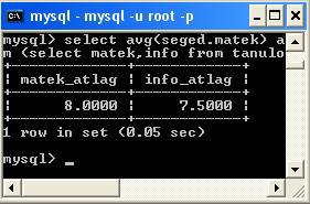 SELECT AVG(seged.matek) AS matek_atlag ,AVG(seged.info) AS info_atlag FROM (SELECT matek,info FROM tanulok WHERE matek>=8 OR info>=8) AS seged;