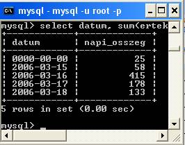 CREATE TABLE seged AS SELECT datum,SUM(ertek) AS osszeg FROM tabla GROUP BY datum ;