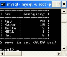 SUM(oszlopneve), az oszlop értékeinek az összegét számolja ki. A NULL értéket nem veszi figyelembe. |