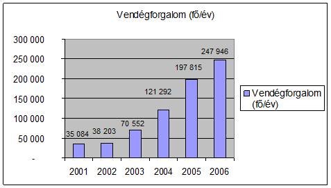 A 'Fürdö vendégforgalma' táblázatból jól látható, hogy a bevételek növekedése arányban van a fürdöbe érkezö vendégek számával. A vendégforgalmi adatok és a kérdöíves felmérések is alátámasztják, hogy mind az Országos Egészségpénztár által finanszírozott gyógyászati szolgáltatásokat igénybevevök, mind a fizetö vendégek forgalma emelkedö trendü. A 2004-ben befejezödött fejlesztést és bövítést követöen a fürdö látogatóforgalma ugrásszerüen megnövekedett.