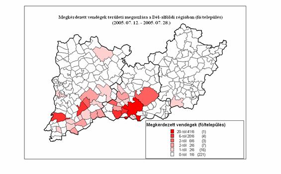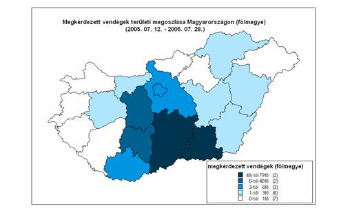 A fenti ábra az Erzsébet Mórahalmi Gyógyfürdö kérdöíves felmérése során megkérdezett vendégek országos területi megoszlását szemlélteti. Jól kivehetö a térképen a megkérdezett vendégek területi megoszlásának Közép-Magyarországi koncentráltsága.