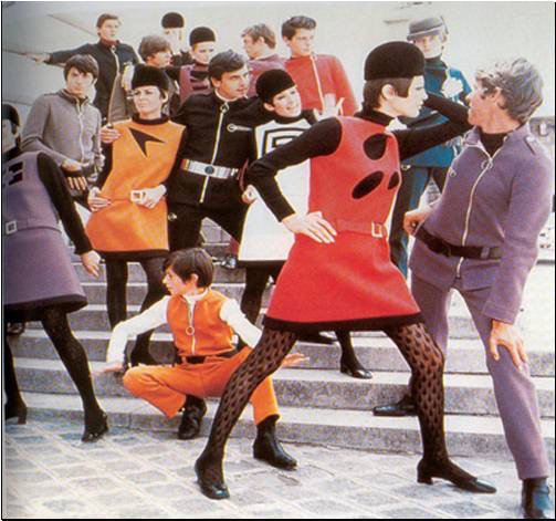 A hatvanas években Párizs töltötte be a legnagyobb szerepet a divat világában. Az ifjú Párizsi divattervezők pret-a-porter kollekció hatalmas feltűnést keltettek a divat világában. 1961-ben Jurij Gagarin az űrben járt, ami rengeteg divattervezőt megihletett. Pierre Cardin űrruhákat tervezett, ezek az alkotások véleménye szerint előjelet mutattak a 2000.-évekre. A fiatal és tehetséges francia divattervezők rengeteg újítással, új formai megoldással rukkoltak elő az évtizedben. Paco Rabanne például textil helyett plexi, könnyűfém és papíranyagból készítette ruháit, vagy André Courréges műanyagruhákat tervezett, melyeket egyszerű forma, egyenes vonal és mértani alakzatok jellemezték. [33]