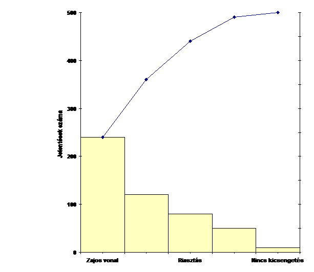 h) A Pareto-diagrammból meghatározandók a minöségjavítás céljára a legjobb eredményt hozó elemek.