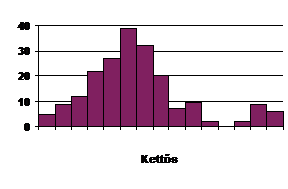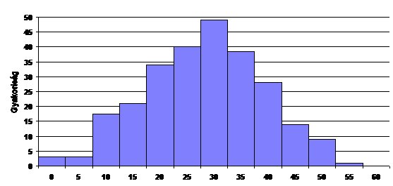 g) Megrajzolandó a kumulált gyakorisági görbe az egyes elemek magasságának balról jobbra történö összegezése útján (lásd az A.11. ábrát).