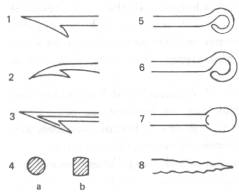 erösített hegyü, rövid vagy hosszú szárú, hegesztéssel végég zárt