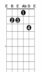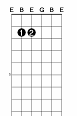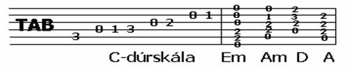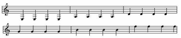 Tehát a nagy- és a kisbetükkel jelölt hangok sorát jelöljük basszuskulcsban. Ezeket a hangokat a gitárosok ritkán használják (kivéve persze a basszusgitárt). A gitáron megtalálható legmélyebb hang a kis e, melyet violinkulcsban a harmadik pótvonal alatt találunk meg.