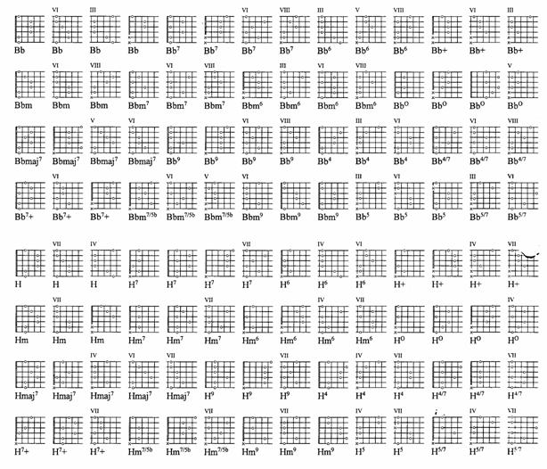 A H2 húrt a külföldi húrkészletekben B2 -ként tüntetik fel, azonban a hangjuk természetesen ugyanaz. Ugyanez jelemzö az akkordokra is, a H -t B-nek, a B -t pedig Bb -nek jelölik.